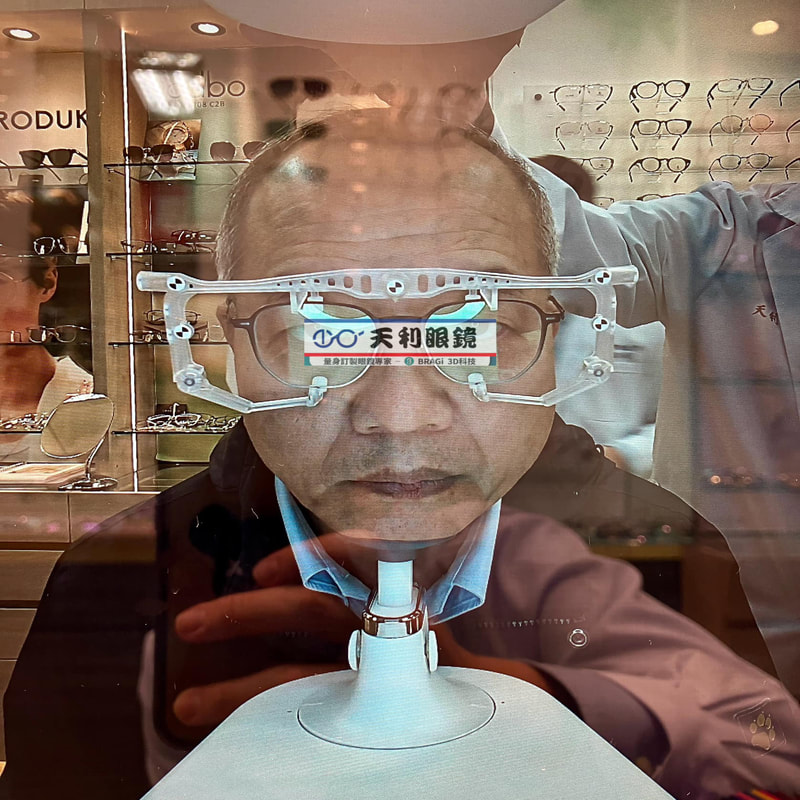 千田的秘密武器-3D 掃描訂製眼鏡,為了擁有一副能夠高度舒適的眼鏡, 鏡框訂製就成為首要的考量因素。BRAGi 採用 3D 列印技術, 讓眼鏡能夠調整塑形,有效能夠根據每個人的頭型、臉型、眼型、 鼻樑高低及耳距的長度等,進行個人化的訂製。
