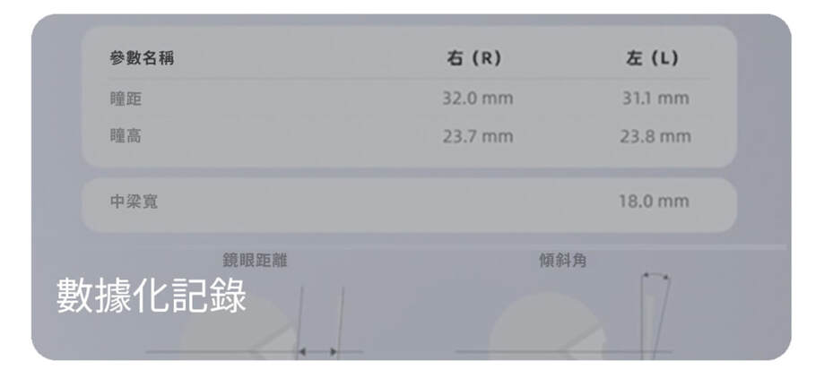 ✓ 瞳距 ✓ 瞳高 ✓ 頂點距離 ✓ 傾斜角等專業參數
